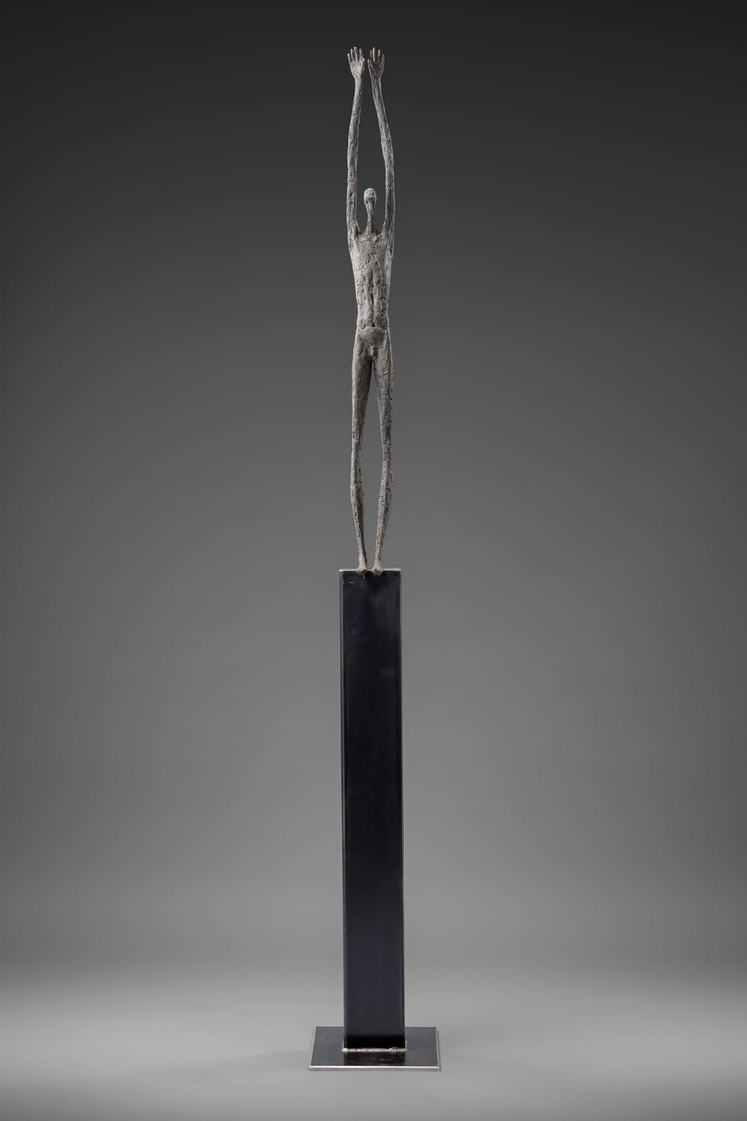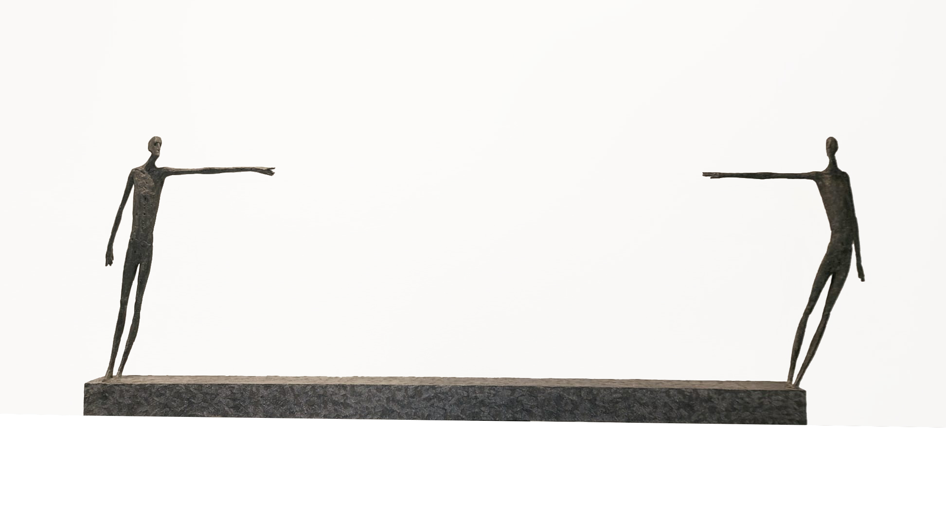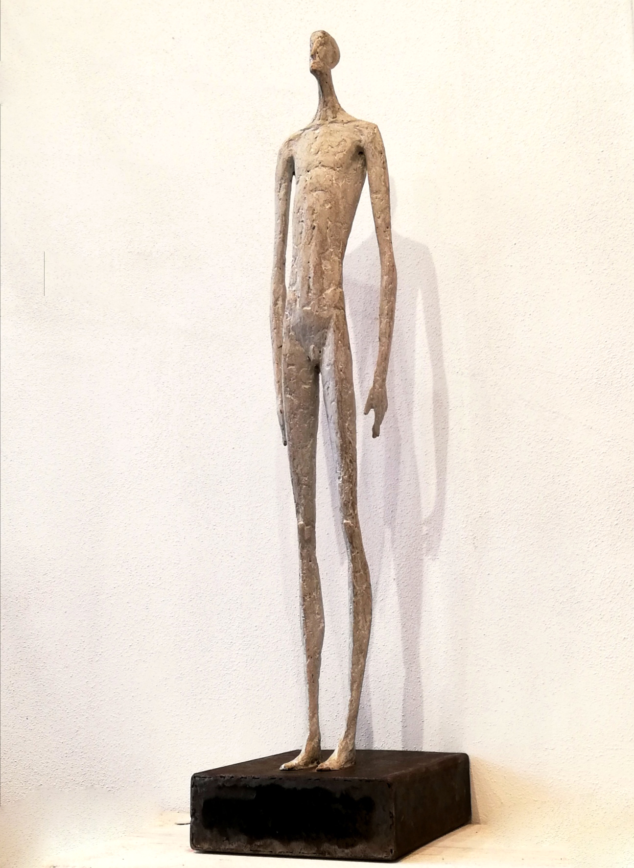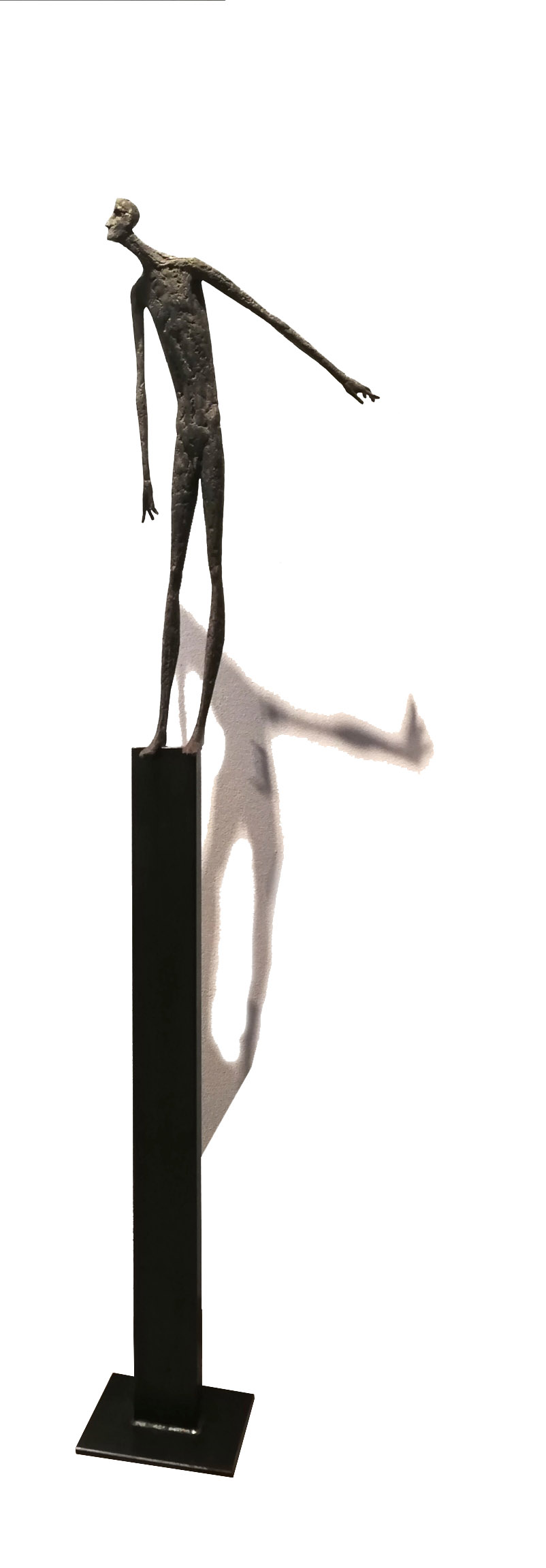 Moroder fa suo questo sentimento di purificazione e di elevazione dell’Io. L’essere umano si fa esile, sottile e perde i connotati propri dell’espressione facciale. L’identità univoca diventa secondaria, inutile. La ricerca di Moroder conduce all’universale passando per l’individuale, ottenendo da subito un dialogo diretto e una vicinanza con l’interlocutore. Nelle sculture di Moroder ci sono i primitivi, gli antichi, gli Etruschi, ci sono milioni di stratificazioni di immagini che corrono nei nostri occhi, influenzati o meno da culture differenti, ci sono i grandi contemporanei che hanno segnato lo sviluppo della storia dell’arte in maniera indelebile fissando dei punti di svolta nella figurazione. Non può un artista diventare orfano e privarsi di tutto questo trascorso. Moroder è figlio del suo tempo e nel suo tempo è in grado di produrre immagini nuove, straordinariamente distanti da un “prima” antico o da un passato prossimo. Stupendo il paragone con Giacometti, raffronto immediato di un occhio “popolare”, ma altrettanto distante il lavoro compiuto. La cifra stilistica della scultura di Moroder è graffiante, vibrante, elastica e si sviluppa in una, due, tre dimensioni. Il grande Giacometti lasciamolo dietro di noi - con tutto quello che ha saputo donare - e guardiamo oltre. Gli esseri plasmati da Moroder sono sospesi in un tempo e uno spazio indefiniti, godono di un’eternità provvisoria alla quale l’umano tende. Sono figli di una Madre Terra comune che li ha generati, fatti di Anima e Corpo. Sono esseri erranti, vagano alla ricerca di quell’Essenza delle cose tanto ambita da chi è ricco di spirito. La scelta (a mio avviso ardita) di una figurazione classica in un’epoca che ha visto sparire e riapparire più volte la figura umana - seppur mantenendo l’uomo al centro di ogni riflessione, anche trasposta in termini astratti - è coraggiosa e vincente. L’uomo e la donna di oggi si rispecchiano nelle sculture di Moroder: bellezza, bruttezza, instabilità ed equilibrio. Essere o non essere. Orgoglio e volontà. Il suo lavoro non è solo contemporaneo, non è solo esteticamente appagante, non è fine a se stesso. Moroder riesce con estrema abilità a comunicare con ognuno di noi, ad entrare in confidenza col nostro sentire e ad accompagnarci altrove, conducendoci in qualcosa di più bello di più alto. Eleva lo spirito, oltre che l’occhio.
