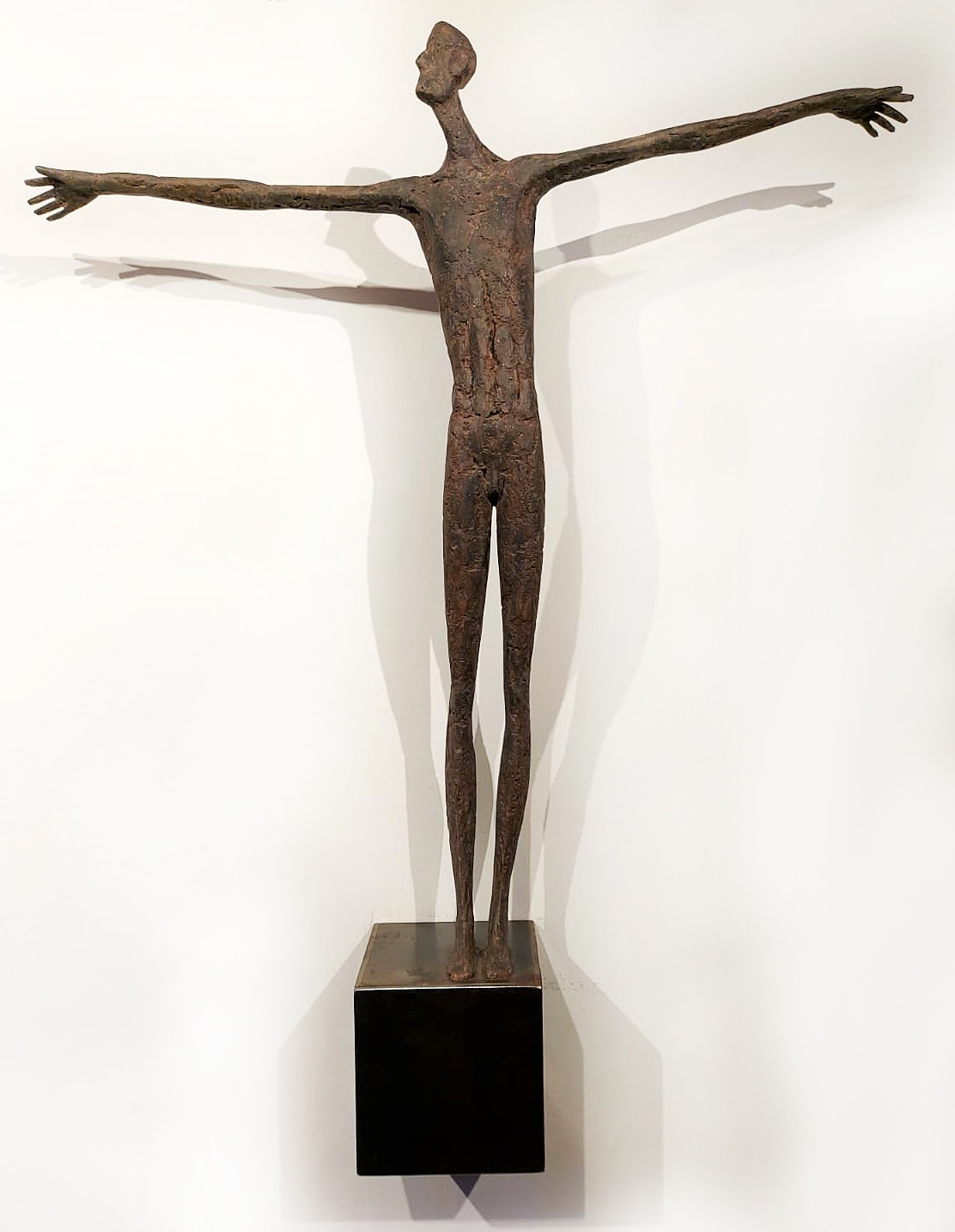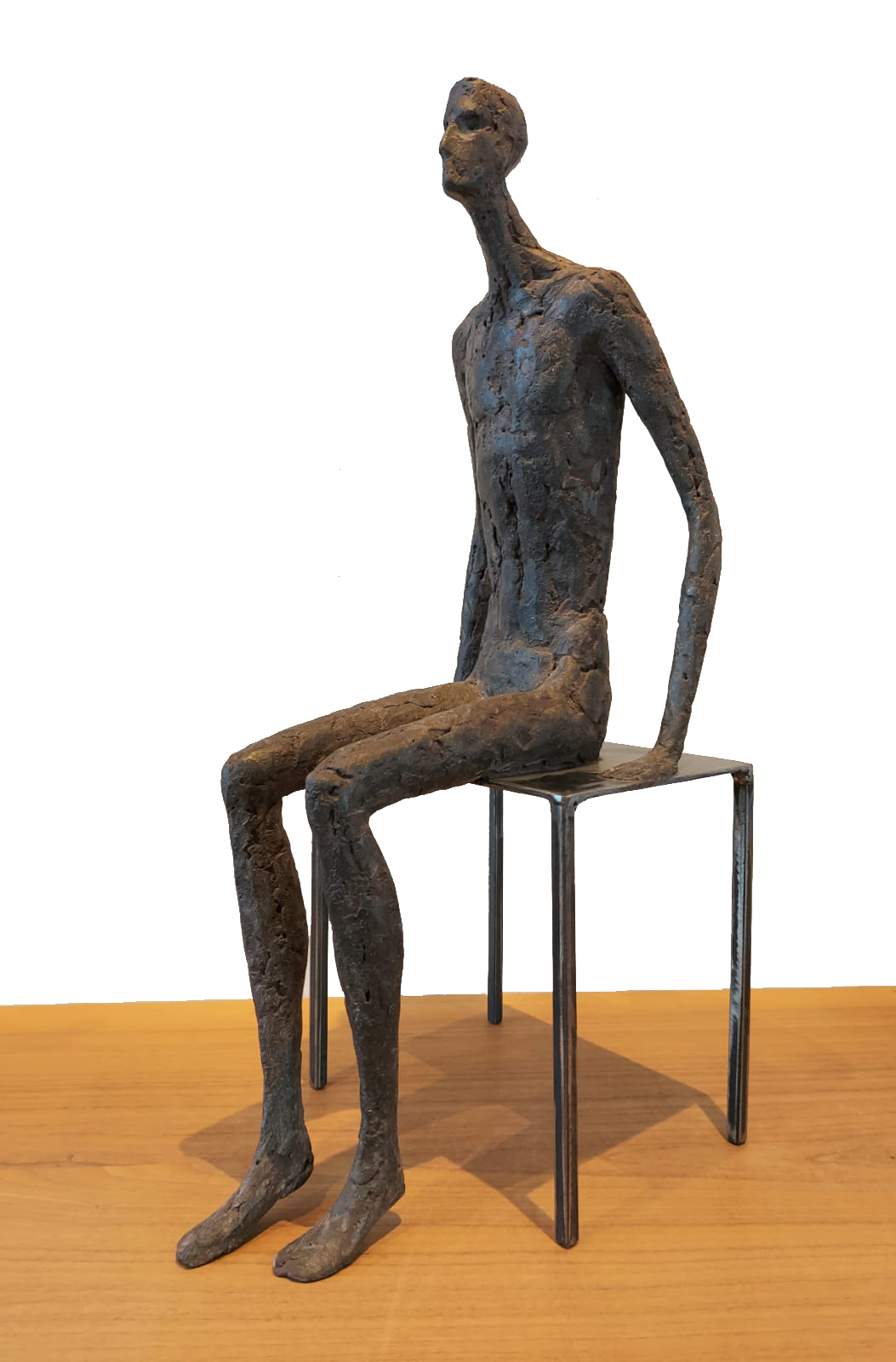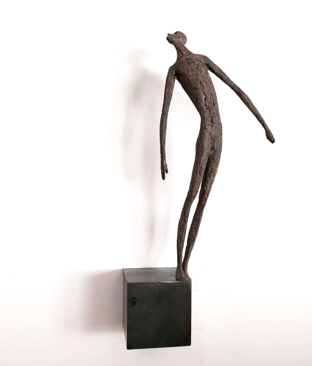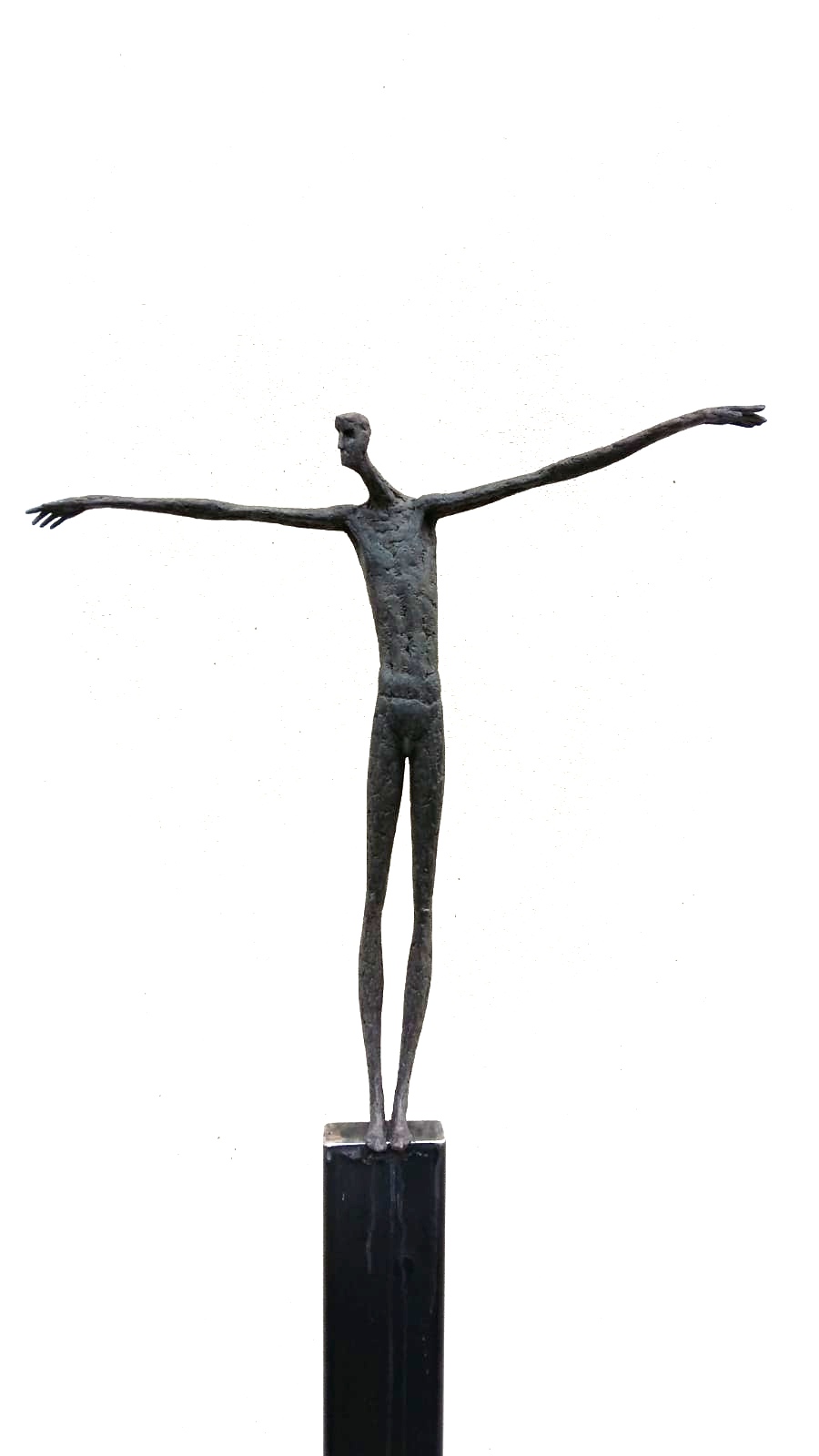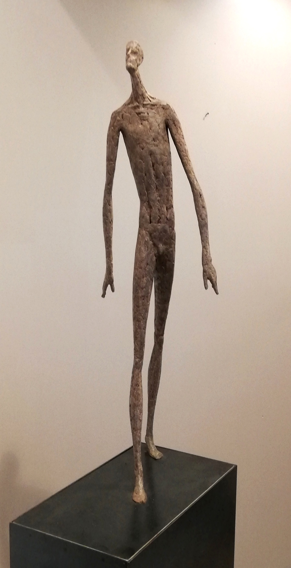 Moroder fa suo questo sentimento di purificazione e di elevazione dell’Io. L’essere umano si fa esile, sottile e perde i connotati propri dell’espressione facciale. L’identità univoca diventa secondaria, inutile. La ricerca di Moroder conduce all’universale passando per l’individuale, ottenendo da subito un dialogo diretto e una vicinanza con l’interlocutore. Nelle sculture di Moroder ci sono i primitivi, gli antichi, gli Etruschi, ci sono milioni di stratificazioni di immagini che corrono nei nostri occhi, influenzati o meno da culture differenti, ci sono i grandi contemporanei che hanno segnato lo sviluppo della storia dell’arte in maniera indelebile fissando dei punti di svolta nella figurazione. Non può un artista diventare orfano e privarsi di tutto questo trascorso. Moroder è figlio del suo tempo e nel suo tempo è in grado di produrre immagini nuove, straordinariamente distanti da un “prima” antico o da un passato prossimo. Stupendo il paragone con Giacometti, raffronto immediato di un occhio “popolare”, ma altrettanto distante il lavoro compiuto. La cifra stilistica della scultura di Moroder è graffiante, vibrante, elastica e si sviluppa in una, due, tre dimensioni. Il grande Giacometti lasciamolo dietro di noi - con tutto quello che ha saputo donare - e guardiamo oltre. Gli esseri plasmati da Moroder sono sospesi in un tempo e uno spazio indefiniti, godono di un’eternità provvisoria alla quale l’umano tende. Sono figli di una Madre Terra comune che li ha generati, fatti di Anima e Corpo. Sono esseri erranti, vagano alla ricerca di quell’Essenza delle cose tanto ambita da chi è ricco di spirito. La scelta (a mio avviso ardita) di una figurazione classica in un’epoca che ha visto sparire e riapparire più volte la figura umana - seppur mantenendo l’uomo al centro di ogni riflessione, anche trasposta in termini astratti - è coraggiosa e vincente. L’uomo e la donna di oggi si rispecchiano nelle sculture di Moroder: bellezza, bruttezza, instabilità ed equilibrio. Essere o non essere. Orgoglio e volontà. Il suo lavoro non è solo contemporaneo, non è solo esteticamente appagante, non è fine a se stesso. Moroder riesce con estrema abilità a comunicare con ognuno di noi, ad entrare in confidenza col nostro sentire e ad accompagnarci altrove, conducendoci in qualcosa di più bello di più alto. Eleva lo spirito, oltre che l’occhio.