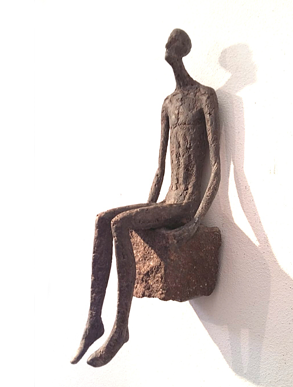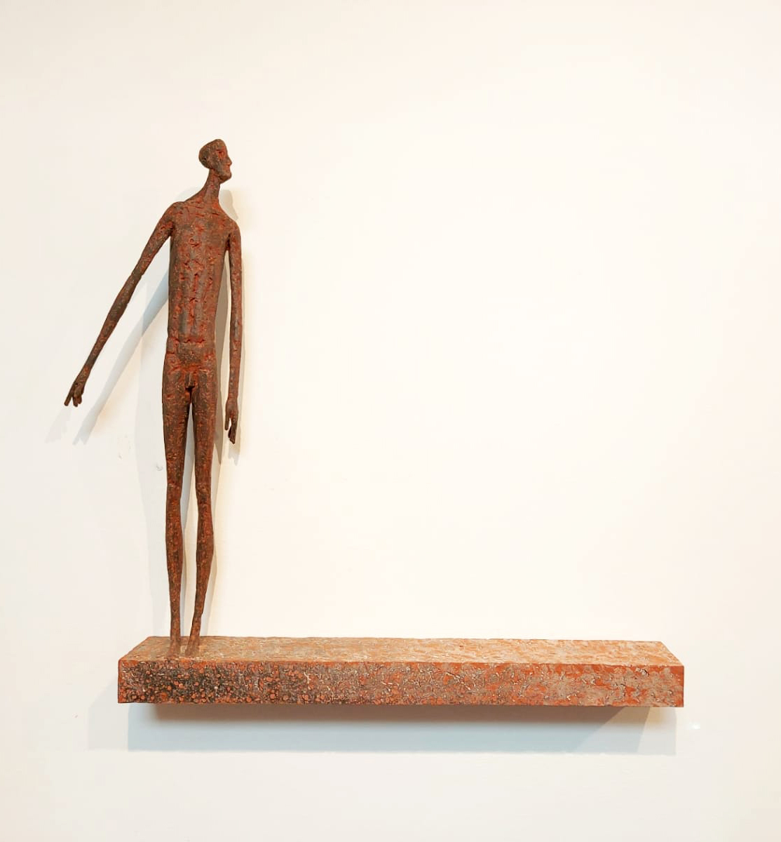 Come si fa a non pensare al legno? Un giovane, oltre i quaranta, che matura artisticamente in quelle pendici splendide della Val Gardena che ha il coraggio di non usare il legno. Gerald Moroder cresce in quel luogo incantato ma è figlio di una cultura nuova, neofita contemporaneo, che osa, sperimenta, muta. La materia scelta dall’artista è composta e plasmata dalle sue mani, è il medium attraverso il quale esprime il suo sentire. La sua montagna è in quelle paste inedite fatte di pietra, di terra, di sabbia, di ferro… Il passaggio fondamentale tra la “convenienza” di un elemento naturale precostituito in attesa di lavorazione, come il legno, e la “ricercatezza” di un preparato unico, autentico, originale. Seppur da sempre ciò che è e ciò che appare sono in dissonanza, la scultura di Moroder si afferma per il suo essere.